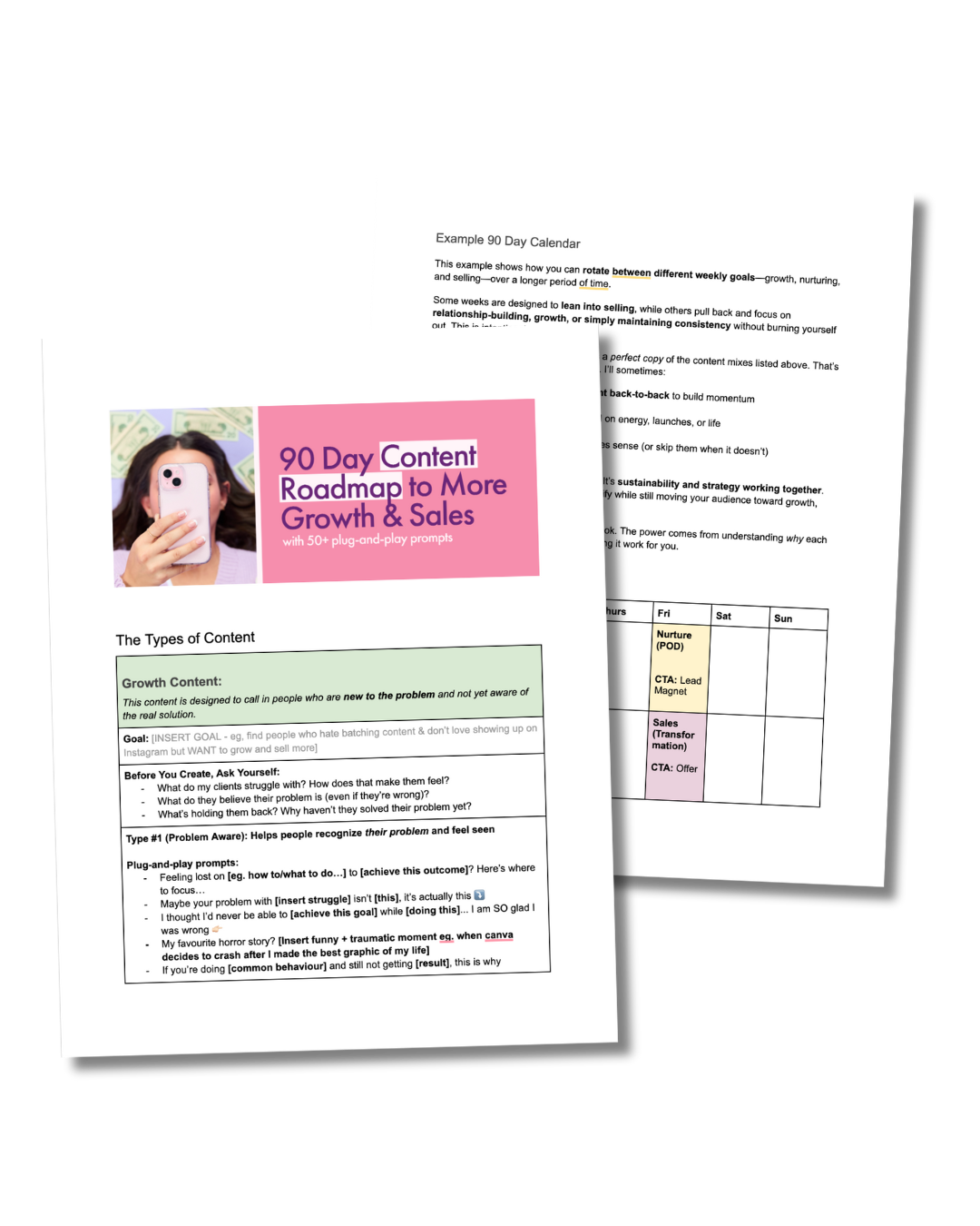 ✓ create your 90-day content calendar with my reusable content roadmap framework (& access a bonus spreadsheet to make planning easy!)