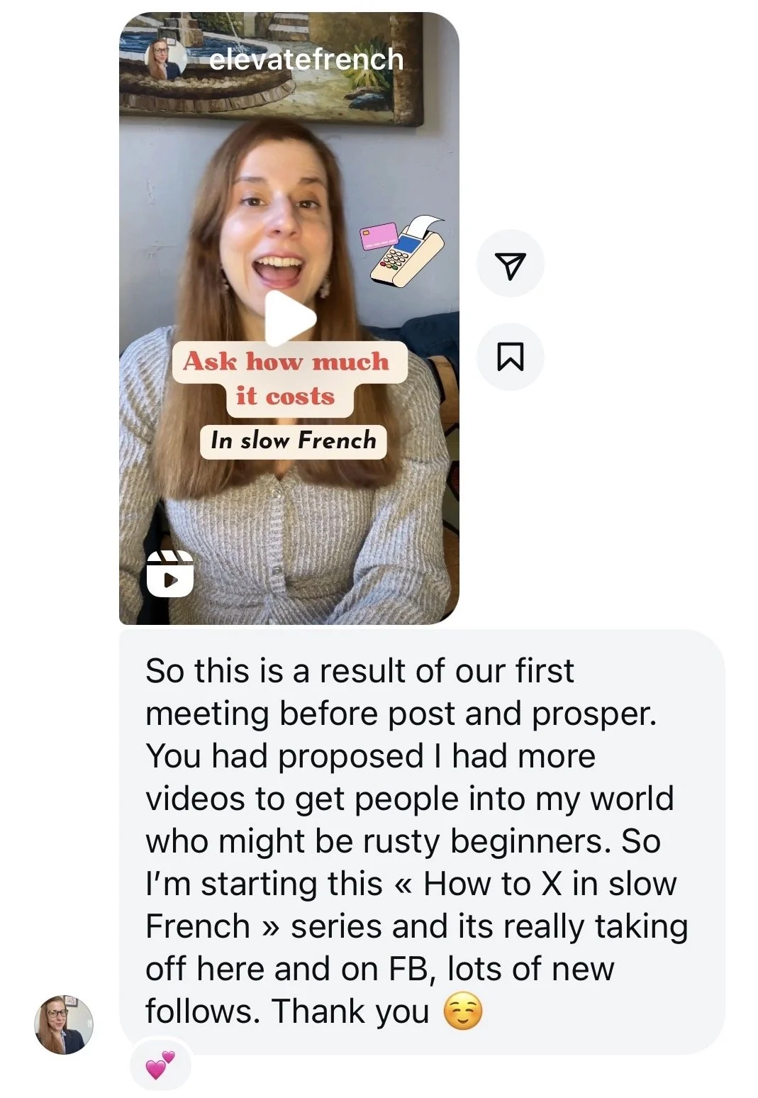 I used to discredit my ideas, get stuck on how to turn them into content, and overthink so much that I’d never actually post. In the Post & Prosper Club, I get personalized support to make my ideas fit my offers and audience, plus feedback that gives me the confidence to hit post without spiraling over vanity metrics. Taylor is so supportive and creative; she instantly gets your business and knows how to tweak hooks and captions so they land. Instagram finally feels like a tool I can use to support my business, not a mindfuck to continually avoid.”